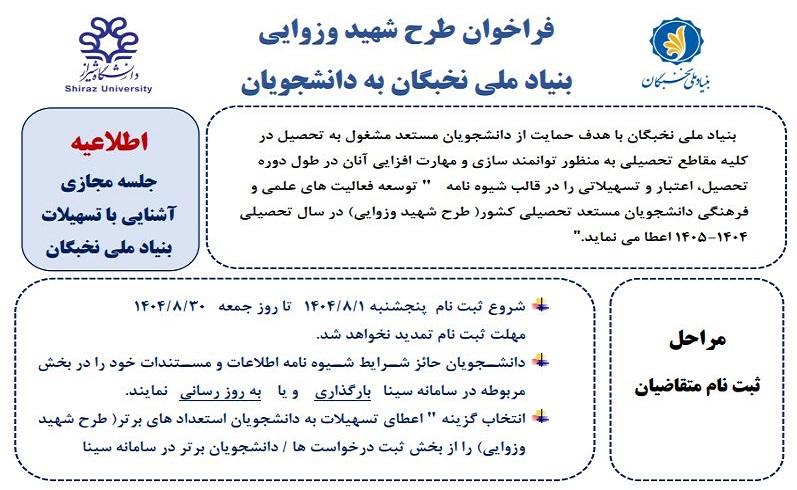 فراخوان طرح شهید وزوایی بنیاد ملی نخبگان به دانشجویان